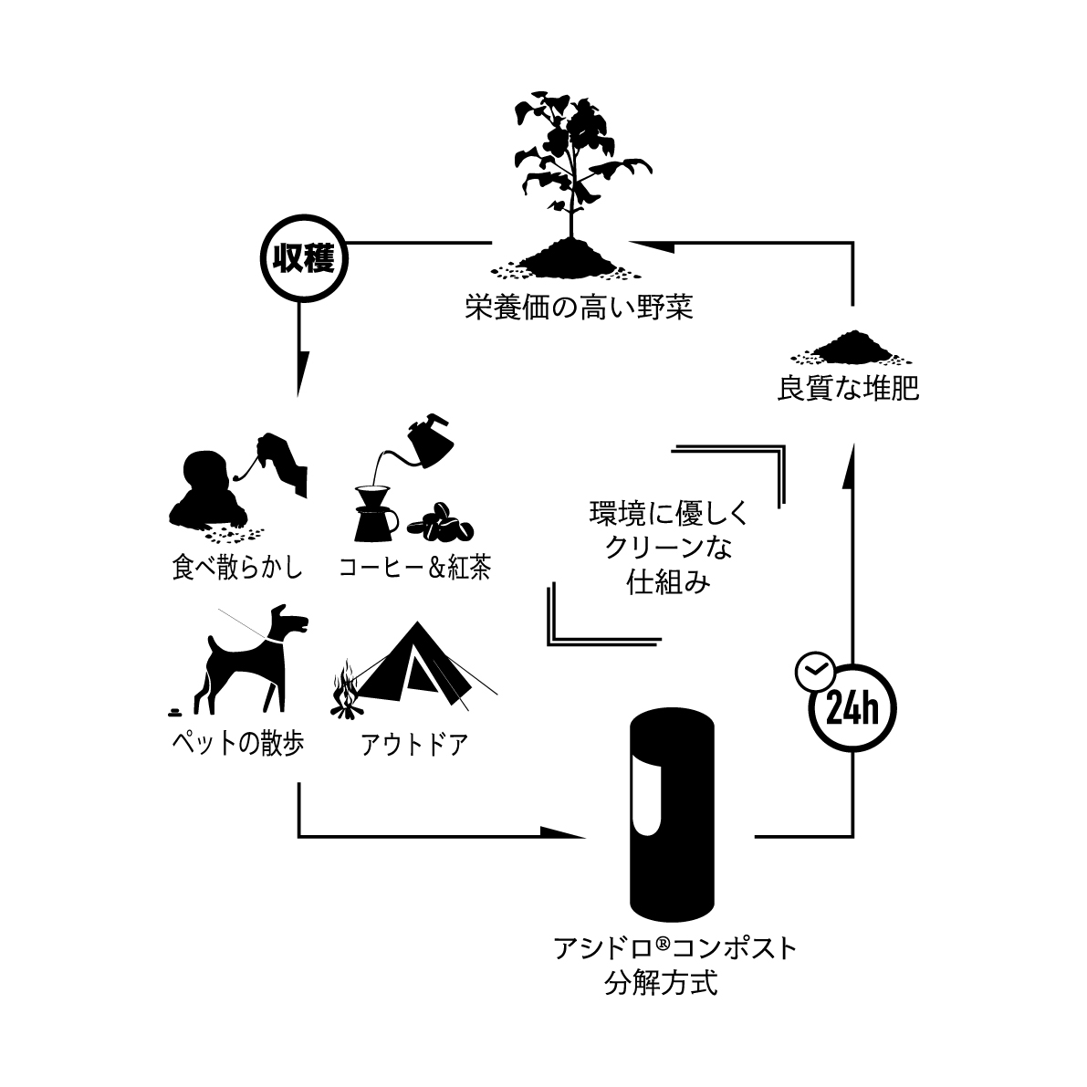 24時間で生ゴミを分解し良質な堆肥に変えるアシドロ菌。 |
